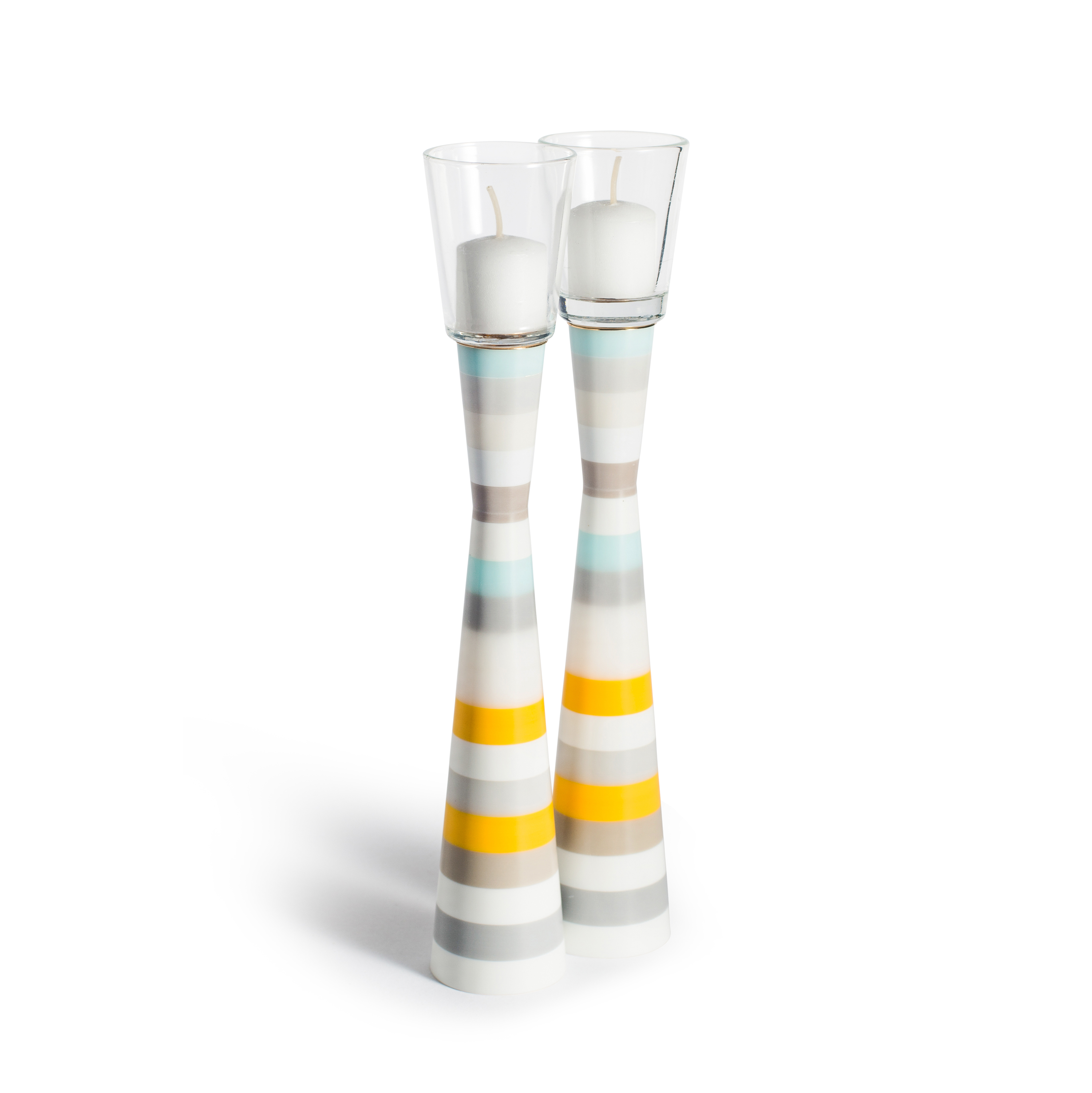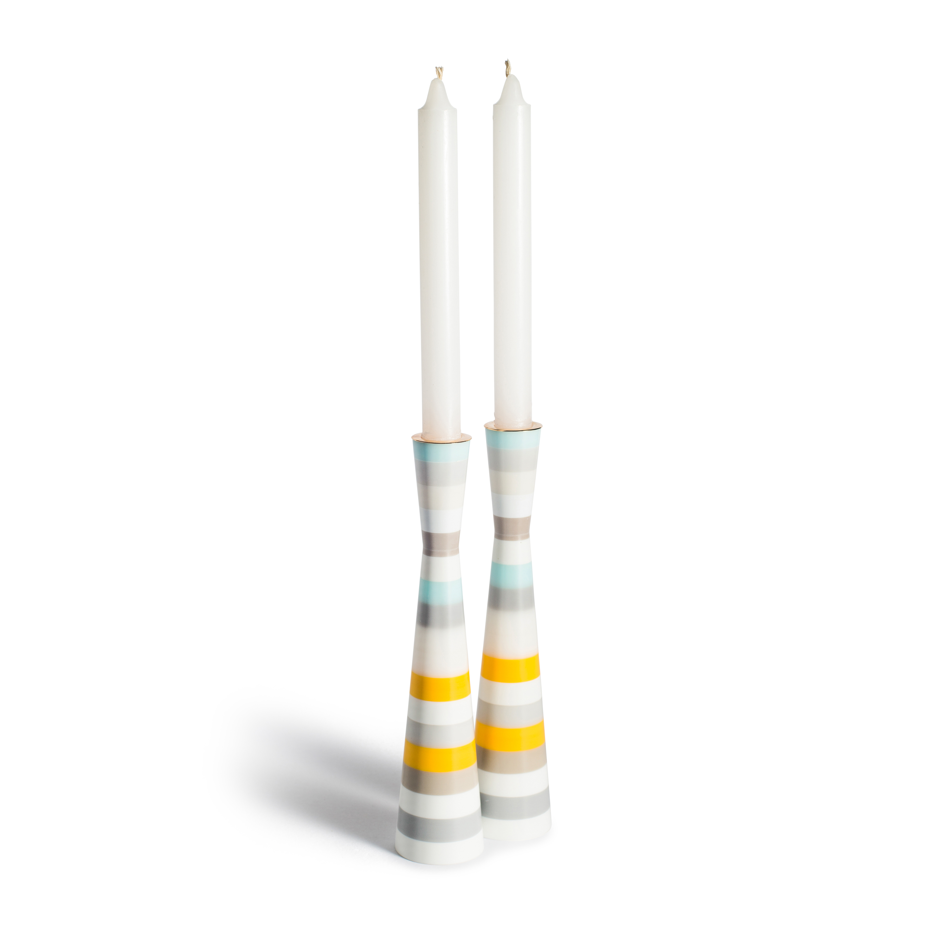 <p dir="rtl"><span>PAMOT</span> – פמוט זוגי – צהוב, תכלת ולבן פסים<br><br>מיוצר מקוריאן ומפליז מצופה זהב 24 קראט<br> </p><p dir="rtl">נעשה אחרי תהליך ייחודי שבו לקחנו פחת של קוריאן ומחזרנו אותו</p><p dir="rtl">> צבע: צהוב, תכלת ולבן פסים<br>> 100% מוצר ירוק<br>> תעודה: מוצר ירוק, סדרת קפסולה<br>> מידות: גובה 21.5 סנטימטר, משקל 560 גרם לערך</p><p dir="rtl">> המוצרים שלנו מגיעים ארוזים ומוגנים<br><br>> עבודת יד מחומר בשם קוריאן אשר פותח לפני 50 שנה כמשטח עבור סביבות עבודה קשות, משווק בעולם מאז שנת 1971 ומיובא לישראל מזה כ – 40 שנה. השימוש העיקרי ב<span> CORIAN : </span>משטחים, כיורים וחיפויי קיר לשימוש מטבח, אמבט ושימושים ביתיים ומוסדיים רבים נוספים<span>.</span></p><p dir="rtl"> </p>