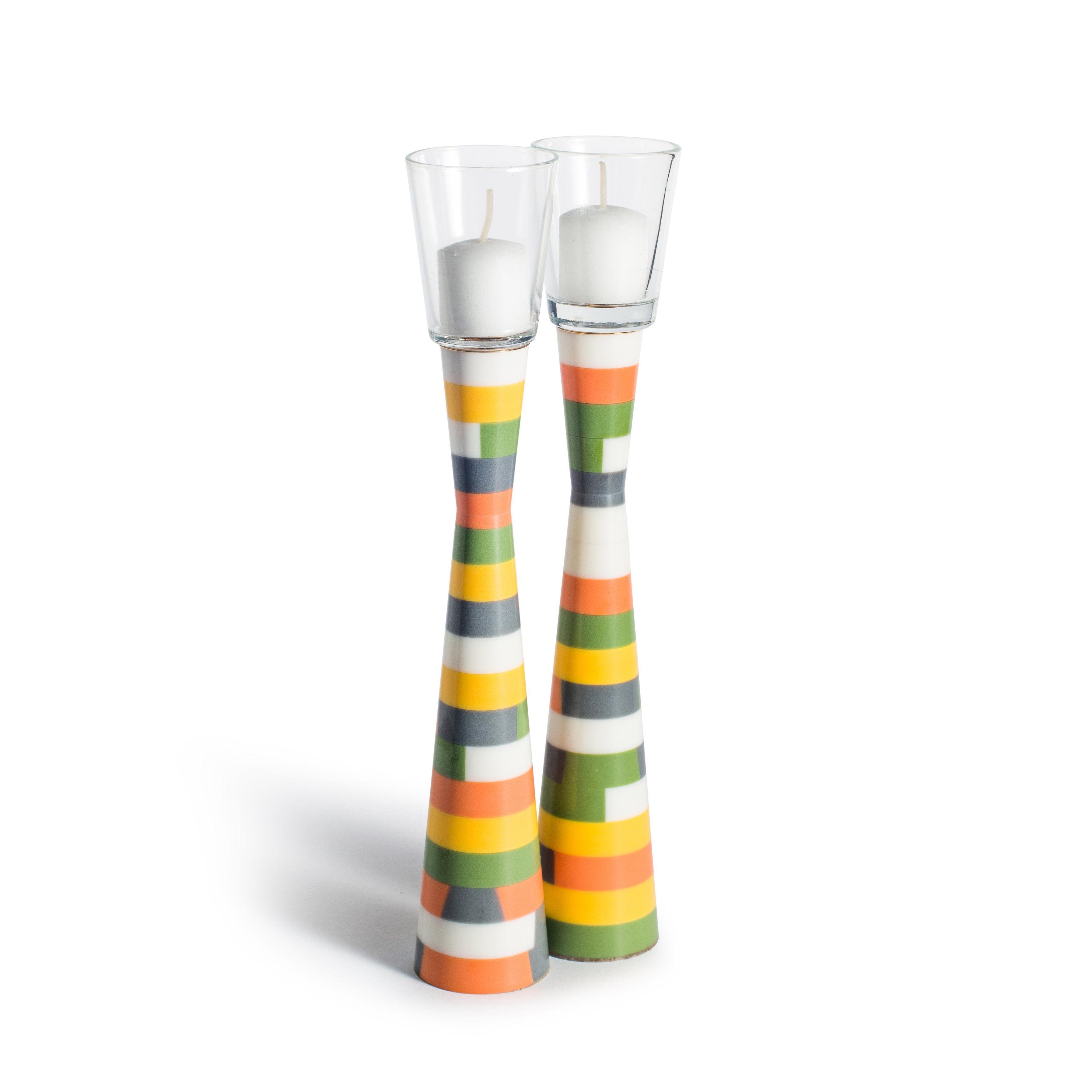 <p dir="rtl"><span>PAMOT</span> – פמוט זוגי – קוביזם צהוב, ירוק וכתום<br><br>מיוצר מקוריאן ומפליז מצופה זהב 24 קראט<br> </p><p dir="rtl">נעשה אחרי תהליך ייחודי שבו לקחנו פחת של קוריאן ומחזרנו אותו</p><p dir="rtl">> צבע: צהוב, ירוק וכתום<br>> 100% מוצר ירוק<br>> תעודה: מוצר ירוק, <span>ONE OF A KIND</span><br>> מידות: גובה 21.5 סנטימטר, משקל 560 גרם לערך</p><p dir="rtl">> המוצרים שלנו מגיעים ארוזים ומוגנים<br><br>> עבודת יד מחומר בשם קוריאן אשר פותח לפני 50 שנה כמשטח עבור סביבות עבודה קשות, משווק בעולם מאז שנת 1971 ומיובא לישראל מזה כ – 40 שנה. השימוש העיקרי ב<span> CORIAN : </span>משטחים, כיורים וחיפויי קיר לשימוש מטבח, אמבט ושימושים ביתיים ומוסדיים רבים נוספים<span>.</span></p><p dir="rtl"> </p>