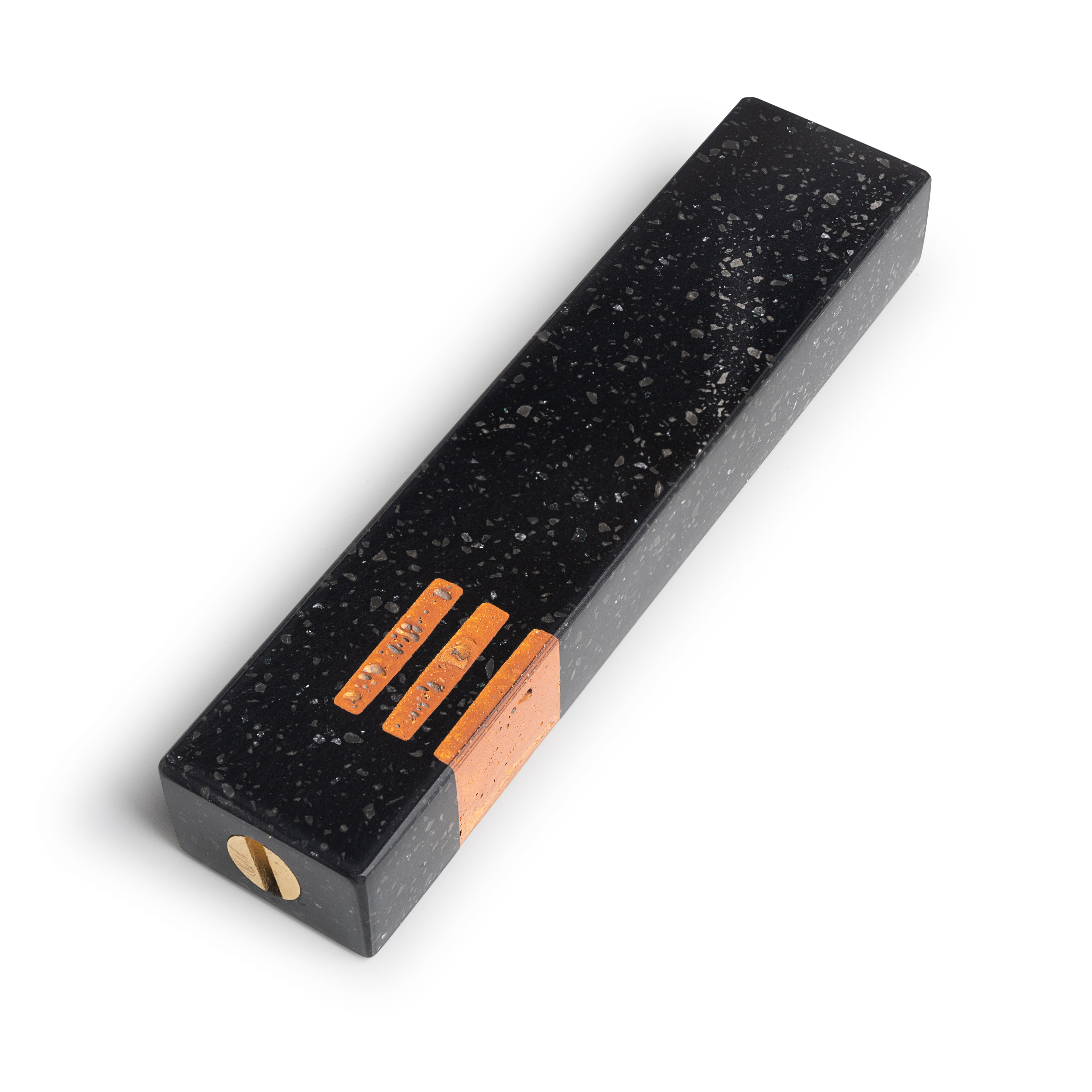 <p dir="rtl"><span><span>מזוזה שקבועה בפתח ביתנו ובכניסה לכל חדר, היא הפריט העיצובי הראשון שמקבל את פנינו. בזכות עיצובה המינימליסטי והלא שגרתי, המשדר נוכחות ומפרש בצורה עכשווית את הסממן היהודי עתיק היומין (שלושה פסים צבעוניים המסמלים את האות ש' של שדי) - המזוזה החדשה מחברת בין עבר, הווה ועתיד.</span></span></p><p dir="rtl"><span><span>בשילוב תכונותיו העמידות של הקוריאן, בורג הפליז הבלתי שביר ונוחות השימוש - מזוזה זו יכולה להישמר היטב לאורך שנים.</span></span></p><p dir="rtl"> </p><p dir="rtl"><span><span>מיוצר מקוריאן.</span></span></p><p dir="rtl"><span><span>נעשה בתהליך ייחודי שבו לקחנו פחת של קוריאן וחידשנו אותו</span></span></p><p dir="rtl"><span><span>> צבע: שחור טרצו וזהב</span></span></p><p dir="rtl"><span><span>> גימור מבריק<br>> 100% מוצר ירוק</span></span></p><p dir="rtl"><span><span>> תעודה: מוצר ירוק</span></span></p><p dir="rtl"><span><span>> מידות: אורך: 15 ס"מ, רוחב: 3.5 ס"מ, עומק: 2 ס"מ</span></span></p><p dir="rtl"><span><span>> המזוזה מגיעה ללא קלף. המזוזה מתאימה לקלף 12 ס"מ</span></span></p><p dir="rtl"><span><span>> המוצרים שלנו מגיעים ארוזים ומוגנים<br><br>> עבודת יד מחומר בשם קוריאן אשר פותח לפני 50 שנה כמשטח עבור סביבות עבודה קשות, משווק בעולם מאז שנת 1971 ומיובא לישראל מזה כ – 40 שנה. השימוש העיקרי ב CORIAN : משטחים, כיורים וחיפויי קיר לשימוש מטבח, אמבט ושימושים ביתיים ומוסדיים רבים נוספים.</span></span></p><p dir="rtl"> </p><p dir="rtl"><strong><span><span>איך להדביק את בית המזוזה על משקוף הדלת כך שהאחיזה בו תחזיק מעמד לאורך זמן ?</span></span></strong></p><p dir="rtl"><span><span>במשקופים בגימור גס כדוגמת קיר/טיח עדין: </span></span></p><p dir="rtl"><span><span>יש להחליק את פני השטח עם נייר ליטוש, לנגב עם מטלית לחה את האבק ולבסוף לנגב עם מטלית יבשה. ככל שפני השטח יהיו חלקים, נקיים מאבק או חורים, כך המזוזה תצמד באופן מושלם. </span></span></p><p dir="rtl"><span><span>יש להסיר את כיסוי המגן שעל המדבקה. להיזהר לא לגעת בדבק, אלא לאחוז בצידי המזוזה ולהצמיד למשקוף במיקום הרצוי. יש להפעיל לחץ קל כ-30 שניות עד להיצמדות טובה. </span></span></p><p dir="rtl"><span><span>במשקוף עץ טבעי גס: מומלץ ללטש מעט את פני השטח בעזרת נייר ליטוש ולאחר מכן לנקות מאבק בעזרת מטלית בד/נייר. יש להסיר את כיסוי המגן שעל המדבקה. להיזהר לא לגעת בדבק, אלא לאחוז בצידי המזוזה ולהצמיד למשקוף במיקום הרצוי. יש להפעיל לחץ קל כ-30 שניות עד להיצמדות טובה. </span></span></p><p dir="rtl"><span><span>במשקופים חלקים כדוגמת עץ מצופה לקה/מתכת צבועה/נירוסטה/זכוכית/פורמייקה: </span></span></p><p dir="rtl"><span><span>יש לנקות את פני השטח משומן ואבק באמצעות מטלית לחה ולנגב. רק לאחר שהאזור יבש ניתן להדביק את המזוזה. יש להסיר את כיסוי המגן שעל המדבקה. להיזהר לא לגעת בדבק, אלא לאחוז בצידי המזוזה ולהצמיד למשקוף במיקום הרצוי. יש להפעיל לחץ קל כ-30 שניות עד להיצמדות טובה. </span></span></p><p dir="rtl"><strong><span><span>כללי:</span></span></strong></p><ul dir="rtl"> <li><span><span>הפליז הינו חומר רך, כך שמומלץ לפתוח בעדינות את בורג הפליז עם מברג עטוף בגומיה רחבה. </span></span></li> <li><span><span>מומלץ להכניס את הקלף למזוזה לפני ההדבקה למשקוף.</span></span></li> <li><span><span>יש לשים לב כאשר מחדירים את הקלף לבית המזוזה, שהמילה "שדי" תופנה כלפי מעלה ביחס לכיוון תליית המזוזה. </span></span></li></ul>