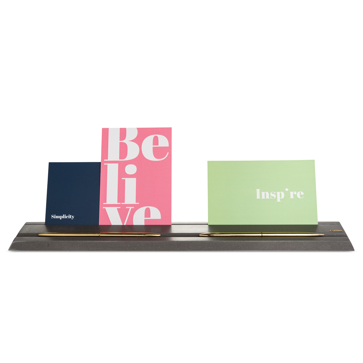 <p dir="rtl">המעמד הינו מתקן מיוחד המשמש להנחת עטים ולהעמדת תמונות, גלויות או פתקאות תזכורת.</p><p dir="rtl">סדרת המעמדים נוצרה כמחווה לבן זוגה של המעצבת, אביטל קרנר רוטנברג, לקראת יום הולדתו.</p><p dir="rtl">"רציתי לעצב מוצר שישתלב בסביבה המשרדית", מספרת רוטנברג. "מוצר שיביא לידי ביטוי את המשפחתיות".</p><p dir="rtl">המעמדים מאופיינים במראה נקי ומינימליסטי, ועשויים קוריאן מחודש 100% UP CYCLE,</p><p dir="rtl">ומגיעים עם עט מוזהב ומארז 3 גלויות מעוררות השראה.</p><p dir="rtl"> </p><p dir="rtl">> 100% מוצר ירוק</p><p dir="rtl">> תעודה: מוצר ירוק</p><p dir="rtl">> מידות: אורך 45 סנטימטר, רוחב 8 ס"מ</p><p dir="rtl">> המוצרים שלנו מגיעים ארוזים ומוגנים<br><br>> עבודת יד מחומר בשם קוריאן אשר פותח לפני 50 שנה כמשטח עבור סביבות עבודה קשות, משווק בעולם מאז שנת 1971 ומיובא לישראל מזה כ – 40 שנה. השימוש העיקרי ב<span> CORIAN : </span>משטחים, כיורים וחיפויי קיר לשימוש מטבח, אמבט ושימושים ביתיים ומוסדיים רבים נוספים<span>.</span></p>